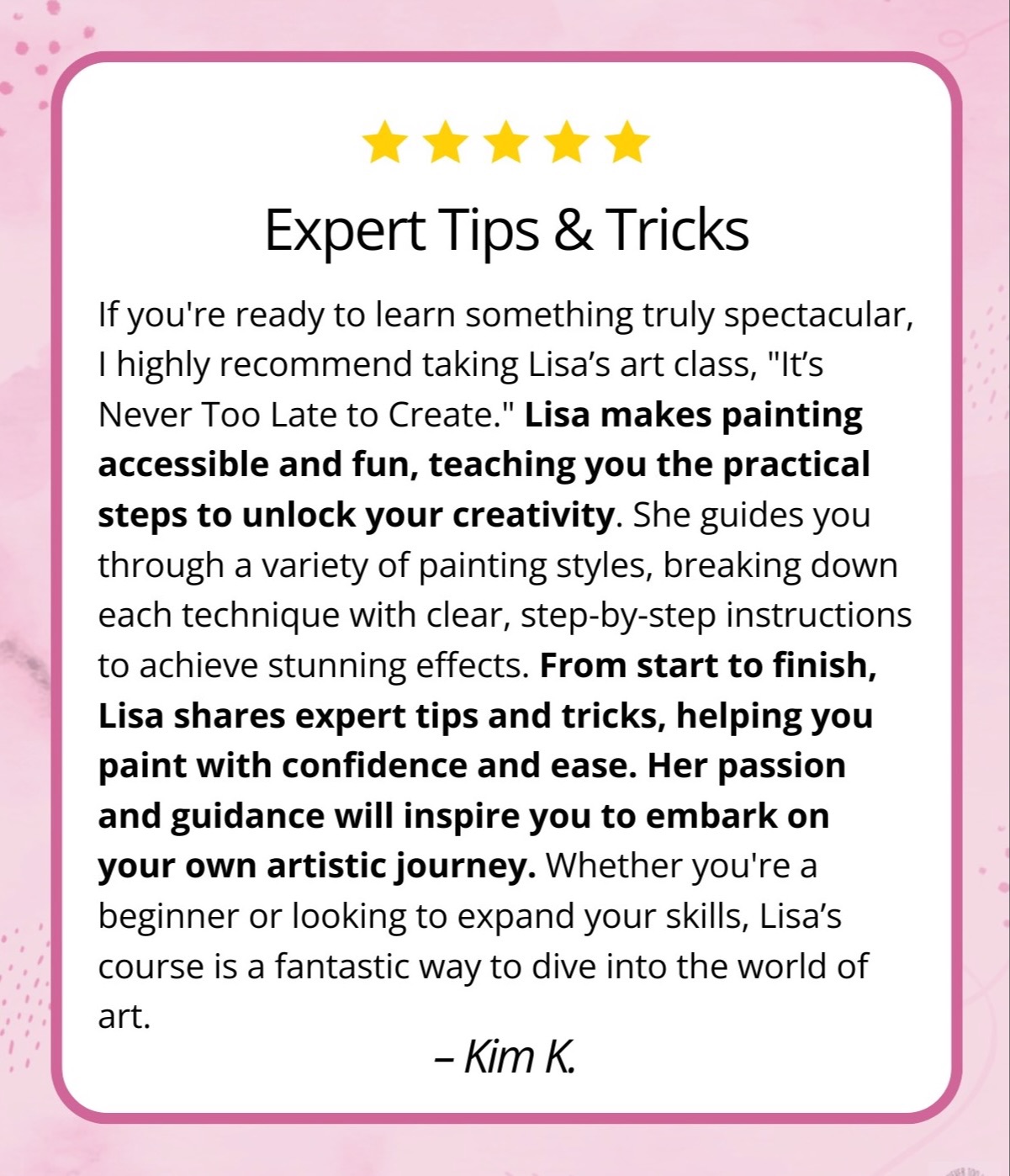 to the full bundle "It's Never Too Late to Create" course  ($497 Value)